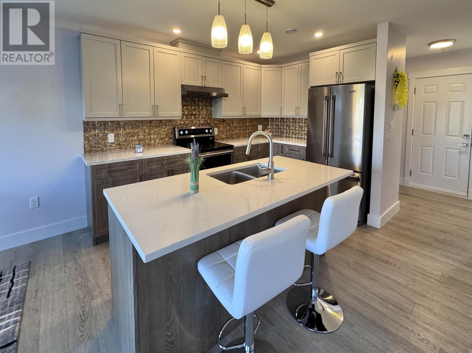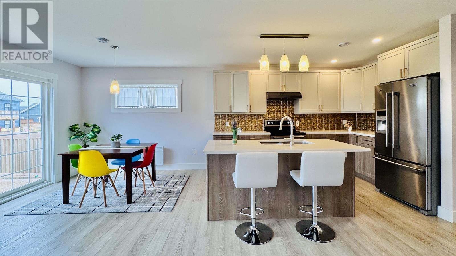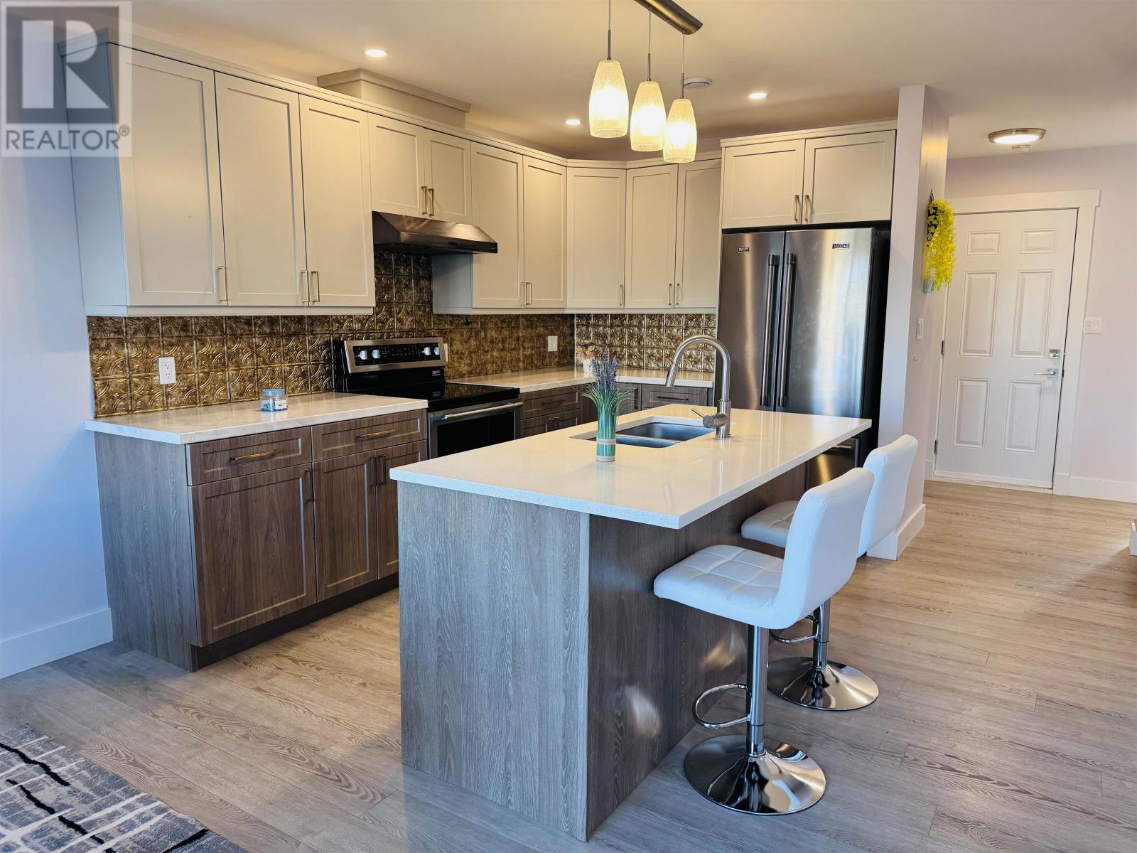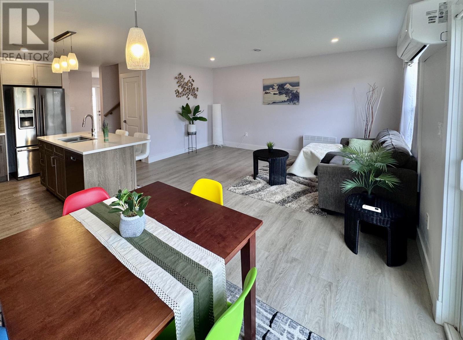 Modern Townhouse in Montgomery Heights ? Prime Location Across from School Welcome to this beautiful inside-unit condo townhouse located in the desirable Montgomery Heights subdivision. Offering 1,414 sq.ft. of well-designed living space and an attached single-car garage, this home combines comfort, style, and functionality. The main level features a bright front foyer with closet, a modern open-concept kitchen with stainless steel appliances, ceramic tile backsplash, and a center island with built-in sink and dishwasher. The spacious dining and living area opens to the back deck through patio doors, creating an ideal space for entertaining. A convenient half bath and direct access from the garage complete the main floor. Upstairs includes a generous primary bedroom with ensuite, two additional bedrooms, a full bathroom, and a laundry area. Additional features include energy-efficient pot lights, wall-mounted electric heaters, a ductless heat pump, and the balance of the Lux Home Warranty. The backyard is enhanced with an existing 6-foot-high double side fence, offering excellent privacy and a peaceful outdoor setting. Ideally located directly across from L.M. Montgomery Elementary School, this quiet and family-friendly neighborhood is close to parks, shopping, and all major amenities. Show as is. (id:4069)